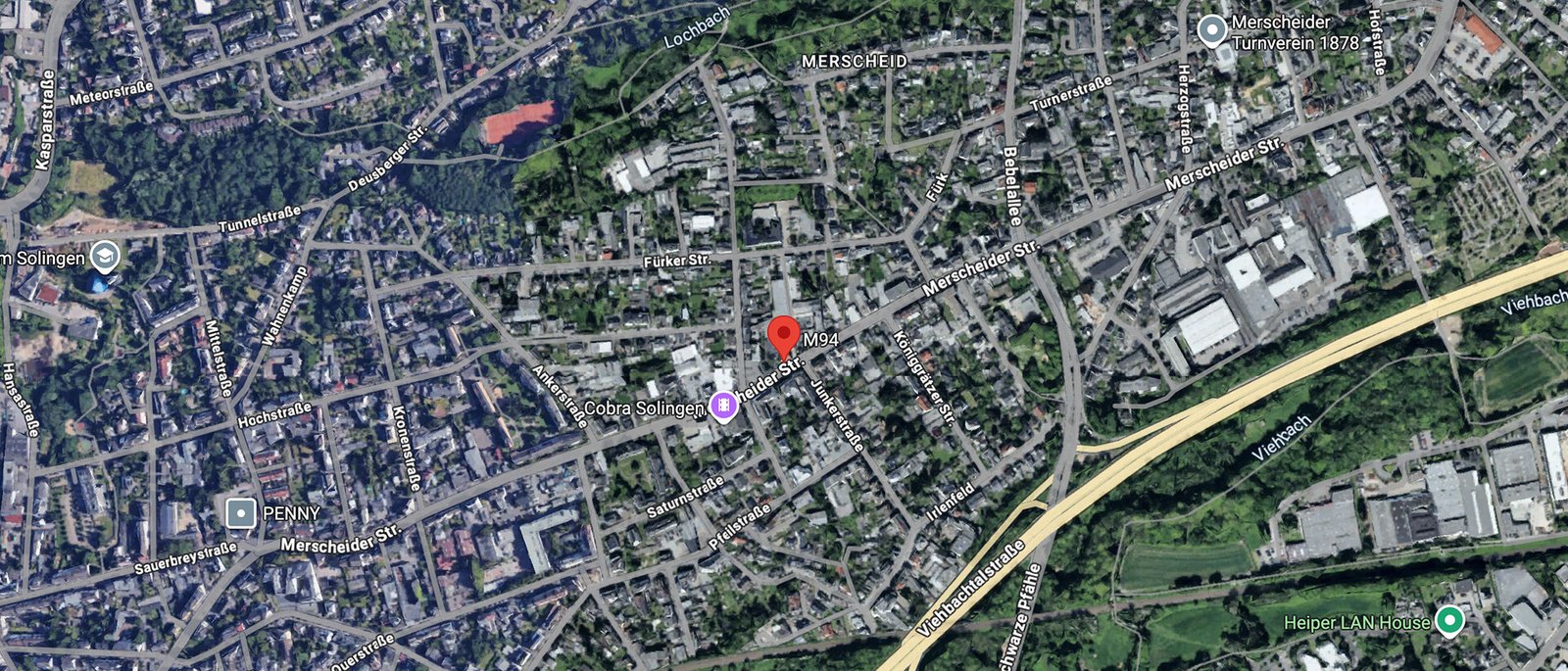 Sie erreichen die auf der gegenüberliegenden Straßenseite ansässige M94 GmbH auf der Merscheider Straße 94 kurze Zeit später.